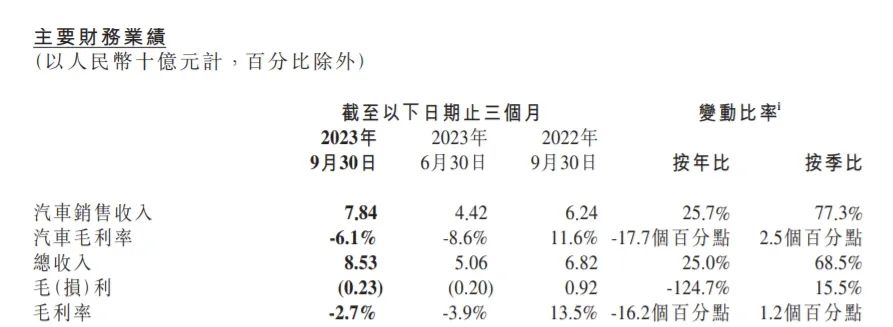 三季度財(cái)報(bào)里,零跑凈虧損卻同比收窄了3億多元,環(huán)比也少虧了1億多。更重要的是,零跑的毛利率在大規(guī)模降價(jià)后竟然轉(zhuǎn)正了,達(dá)到了1.2%。