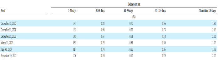三季報顯示,截至9月30日,公司30天壞賬逾期率達(dá)到1.16%,該數(shù)據(jù)相比6月末、3月末均有所提升。
