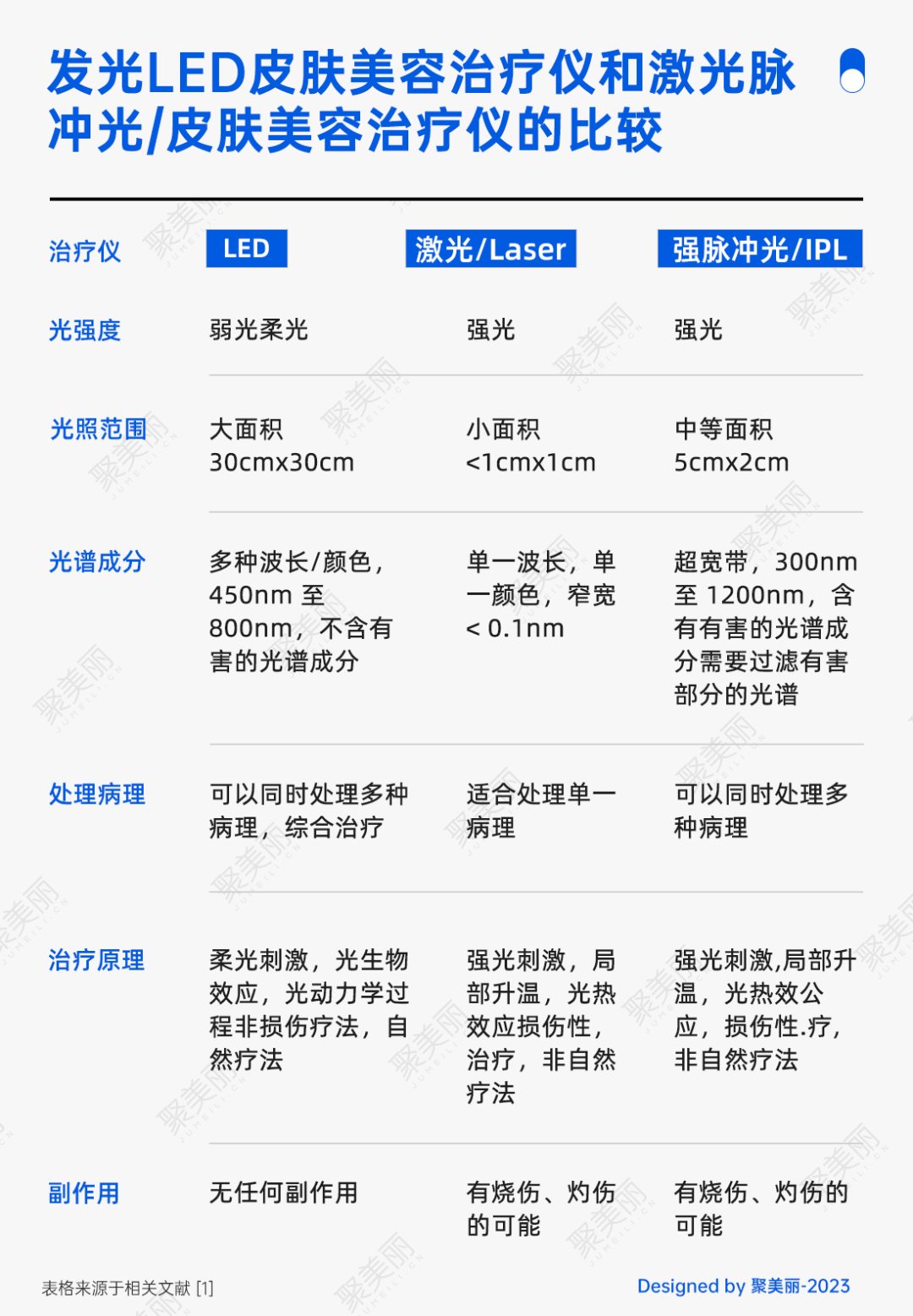 這與光療美容的原理基本一致。按照光強(qiáng)度的不同,光療美容具體可分為L(zhǎng)ED光源、激光、強(qiáng)脈沖光等不同的方向。