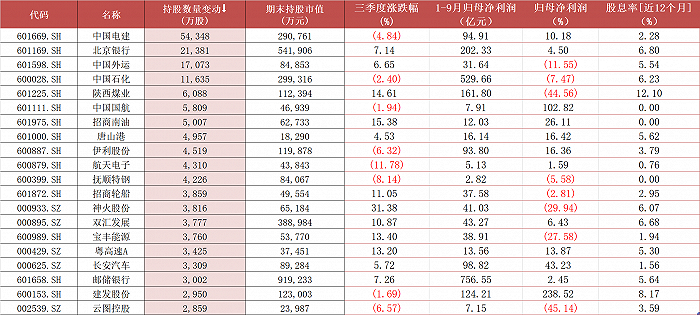 Wind統(tǒng)計(jì),今年三季度,郵儲(chǔ)銀行、中國(guó)石化、北京銀行以及建發(fā)股份(600153.SH)前三季度歸母凈利潤(rùn)均在百億元之上,且建發(fā)股份歸母凈利潤(rùn)同比增長(zhǎng)率高達(dá)239%;此外,在分紅情況上,陜西煤業(yè)股息率(近12個(gè)月指標(biāo),下同)達(dá)到了12.10%,建發(fā)股份、中國(guó)石化、北京銀行以及郵儲(chǔ)銀行股息率也均在5%以上。