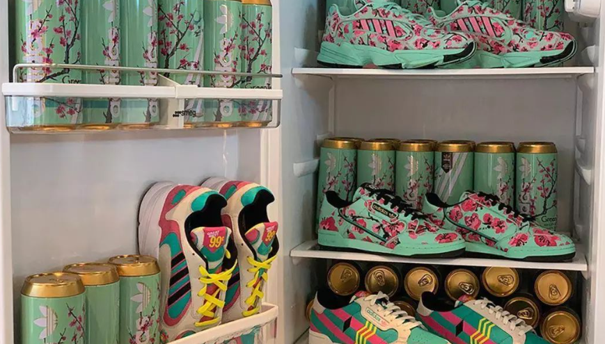 不過,AriZona也在另辟蹊徑。既然不做付費(fèi)營銷,那就尋求免費(fèi)的聯(lián)名合作。2019年,AriZona與阿迪達(dá)斯聯(lián)名推出的一雙99美分球鞋遭到哄搶,球鞋的設(shè)計(jì),依然沿用了AriZona罐裝綠茶的包裝設(shè)計(jì)風(fēng)格。