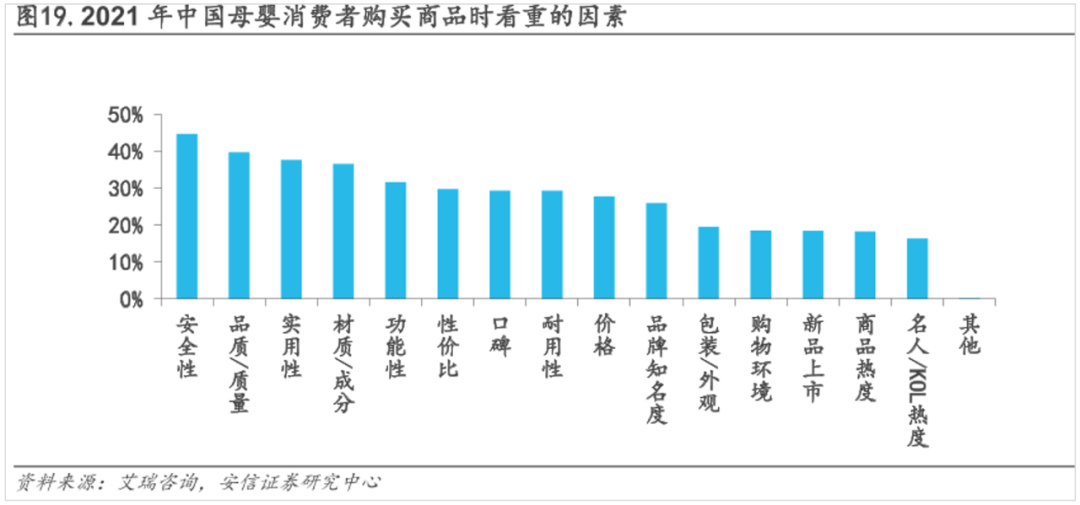 小心翼翼的不止娜娜,艾瑞咨詢數(shù)據(jù)顯示,“安全性”和“品質(zhì)保障”在當(dāng)代寶爸寶媽購物時(shí)最看重的因素,價(jià)格只能排第九。