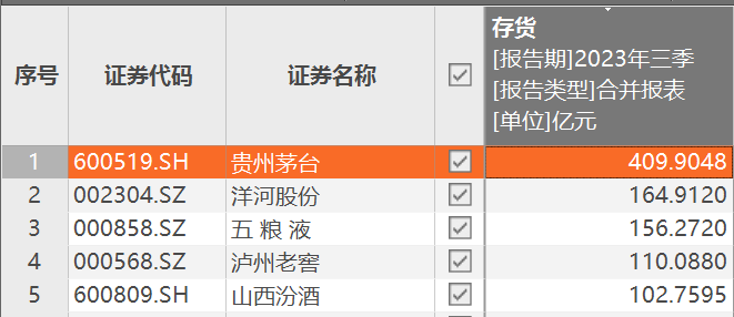 數(shù)據(jù)顯示,截至2023年9月底,在A股上市的20家白酒企業(yè)存貨總額為1363.54億元,貴州茅臺存貨位列第一,高達409.90億元,幾乎等同于第2-4名的存貨總和。