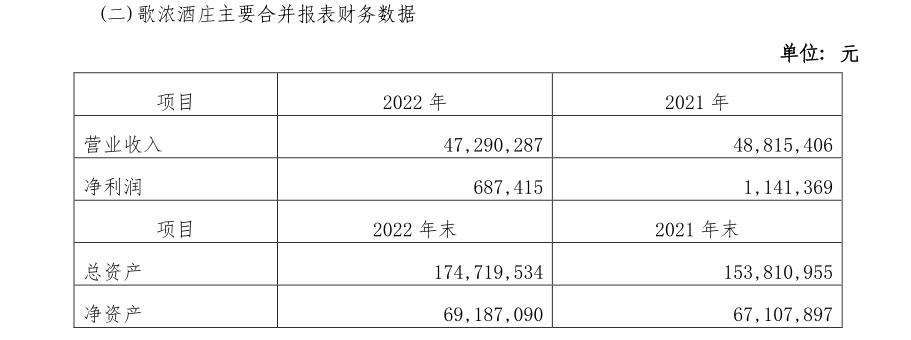 對比已披露的財務數(shù)據(jù)不難發(fā)現(xiàn),歌濃酒莊2021年實現(xiàn)營收4881.54萬元,凈利潤114.14萬元;2022年實現(xiàn)營收4729.03萬元,凈利潤68.74萬元。