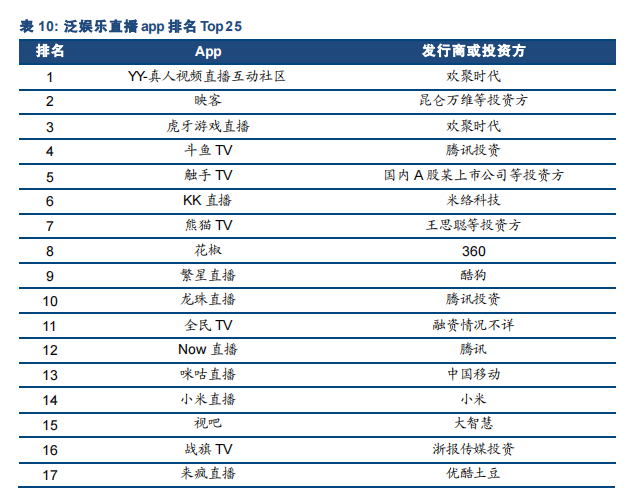 2017年泛娛樂(lè)直播App排名,圖/東興證券