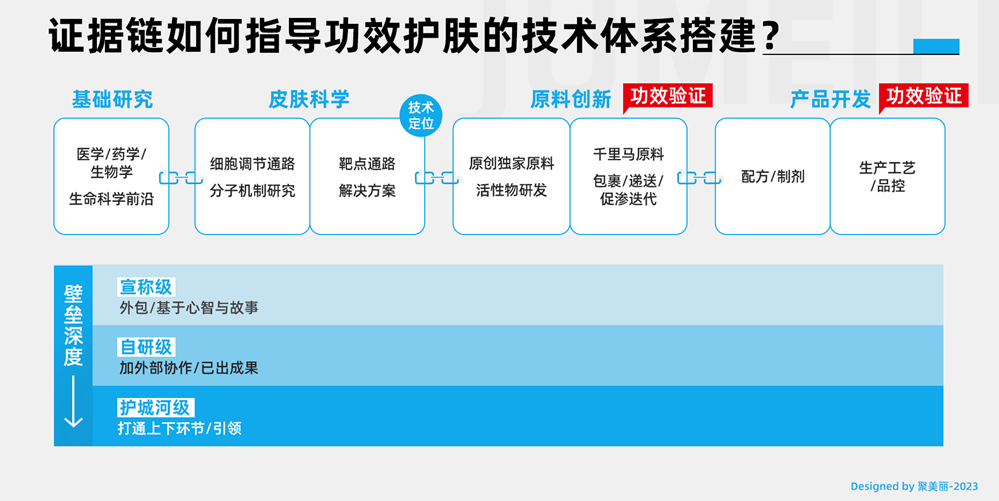 這張圖也已經(jīng)多次地出現(xiàn)在聚美麗眾多文章和活動(dòng)中,我們甚至提出,護(hù)膚品類的競爭已經(jīng)由配方階段進(jìn)入了“活性物時(shí)代”。當(dāng)然,這個(gè)“活性物時(shí)代”是一個(gè)虛指,如今在活性物研發(fā)、皮膚科學(xué)路徑,甚至生命科學(xué)前沿基礎(chǔ)研究上都有成功的國貨品牌案例,在同國際品牌的正面競爭中不落下風(fēng)。