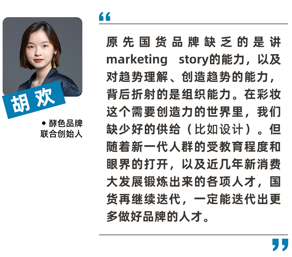 胡歡講過一個(gè)案例,她有一次去一家海外彩妝工廠考察,走進(jìn)他們辦公室,是6個(gè)老爺爺加她,“這場面看起來(我)像他們孫女,這種(技術(shù))經(jīng)驗(yàn)就是時(shí)間帶來的”。