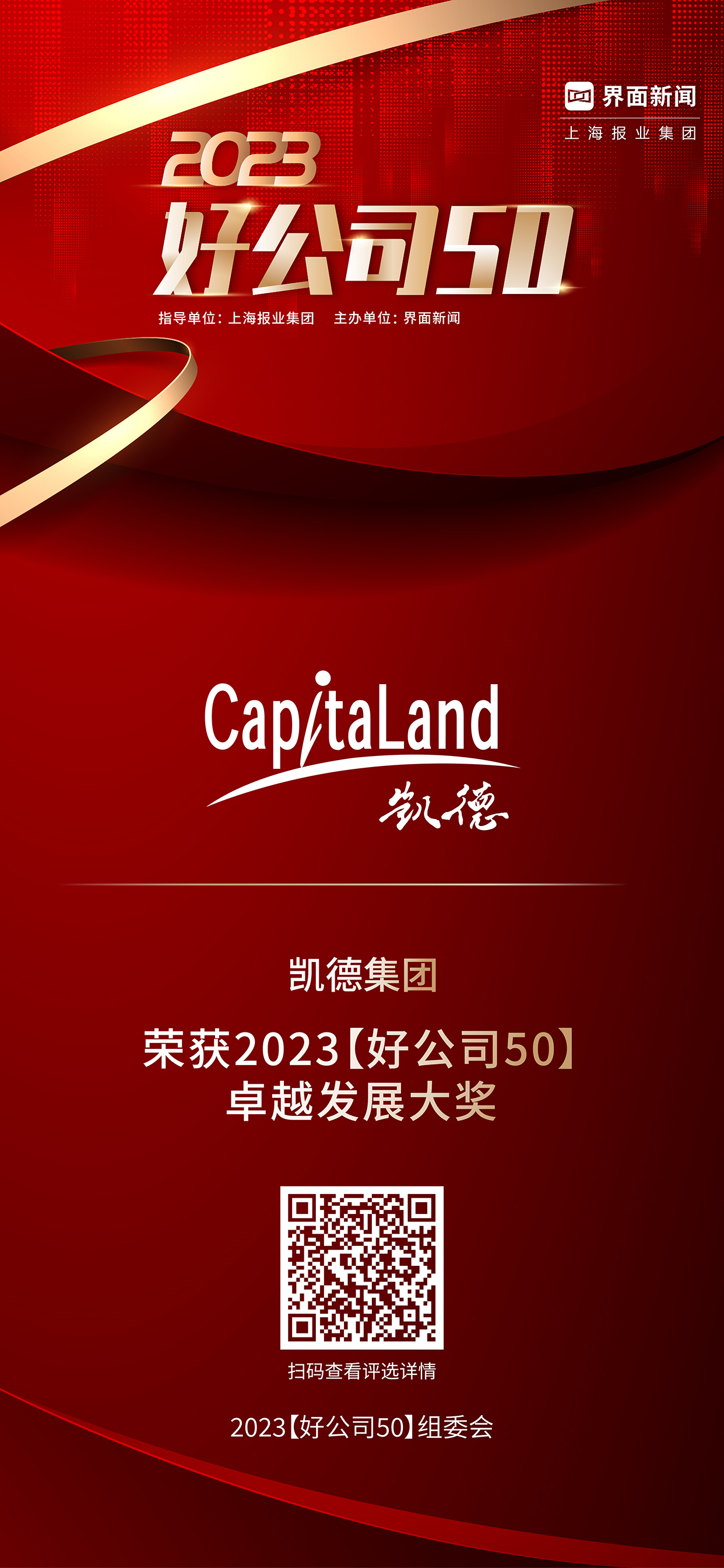 12月20日,上海報業(yè)集團|界面新聞在上海前灘香格里拉酒店舉辦了【2023好公司50】頒獎典禮,正式公布了本年度的獲獎名單。評選自今年5月正式啟動申報以來,來自39個細分行業(yè)的500余家候選公司,經(jīng)過近半年的大眾投票、市場表現(xiàn)、創(chuàng)新活力、公司治理、社會聲譽等方面的角逐,最終50家優(yōu)質(zhì)企業(yè)突破重圍榮登年度榮譽榜單。凱德集團榮獲了【2023好公司50——卓越發(fā)展大獎】。