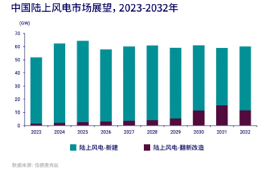 除了以風(fēng)電大基地為主的新增市場(chǎng),伍德麥肯茲還提出,陸上風(fēng)電新增裝機(jī)容量還來自于風(fēng)電翻新改造市場(chǎng)。