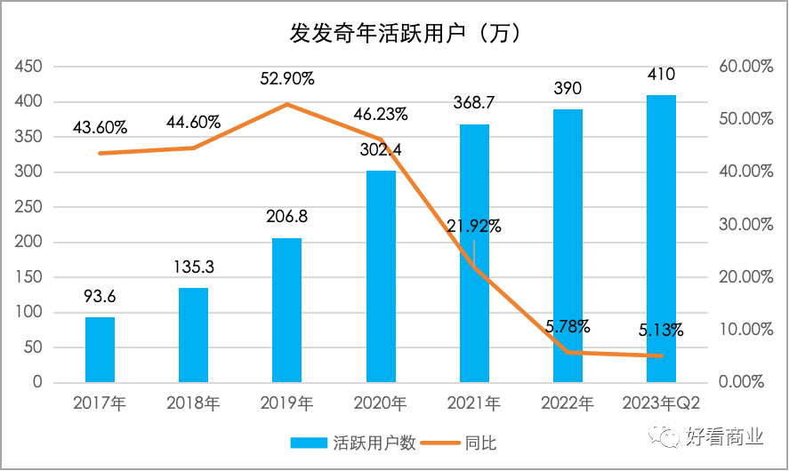財報數(shù)據(jù)也佐證了這一點。從2021年開始,F(xiàn)arfetch的年活躍用戶同比增速就在急劇下滑——從之前每年增長40%-50%驟降至21.92%;之后每況愈下。