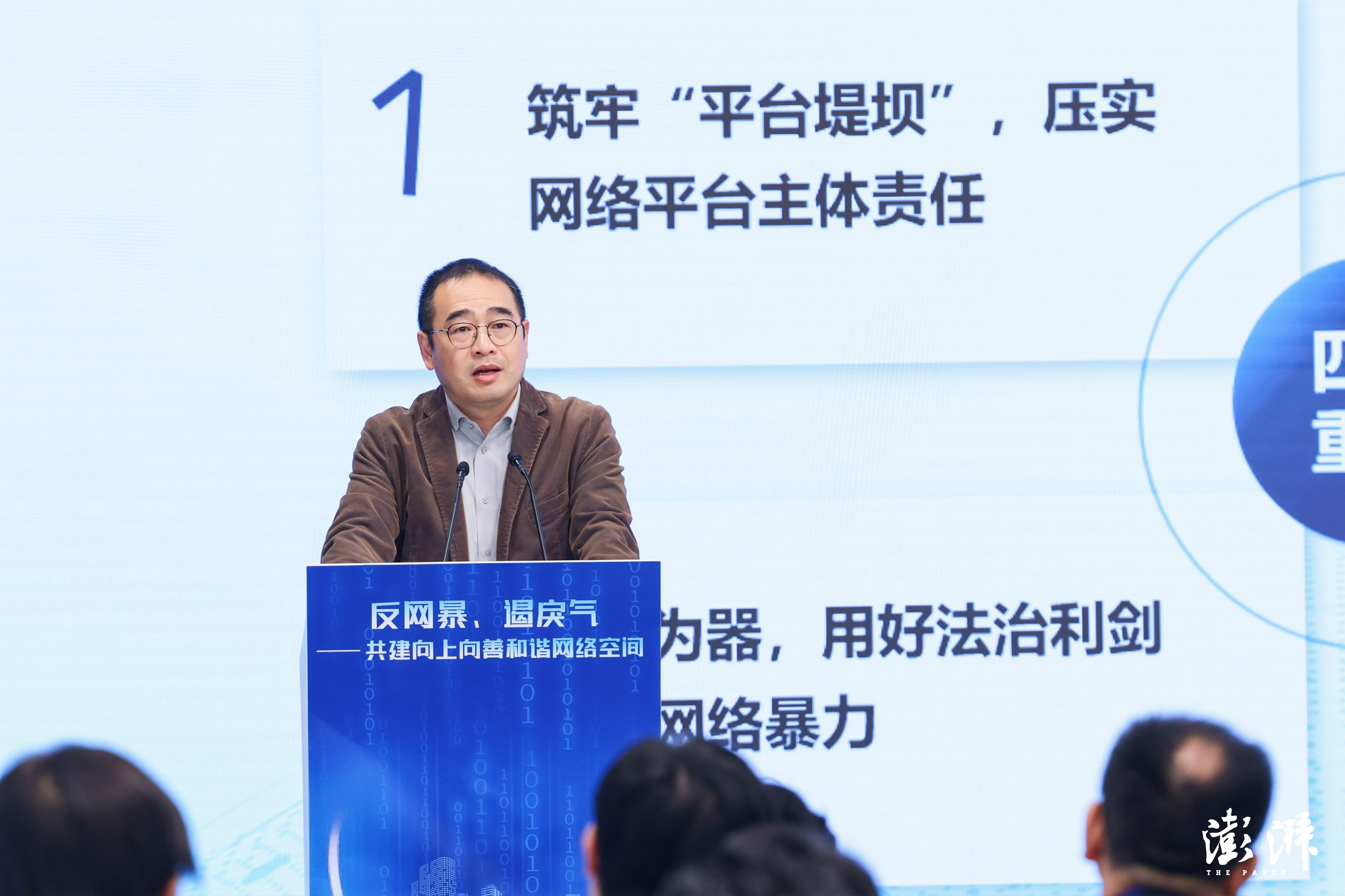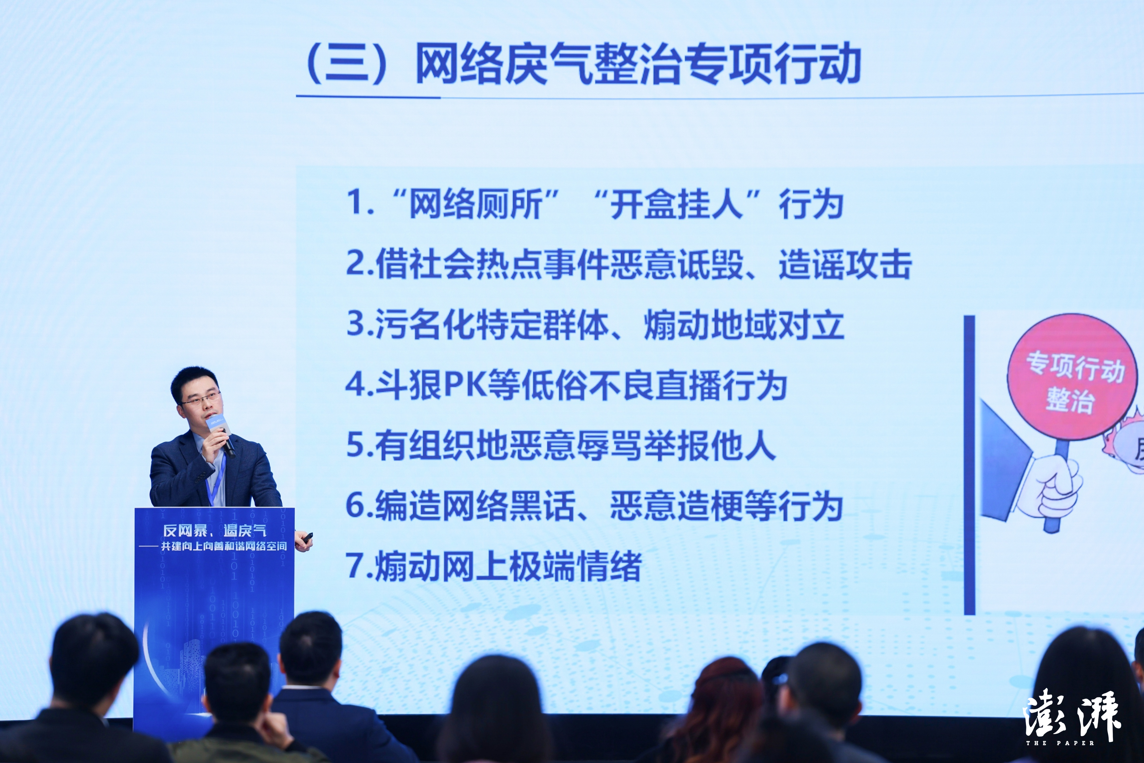 在媒體平臺(tái)分論壇中,上海市委網(wǎng)信辦網(wǎng)管處處長(zhǎng)蔣科、觀察者網(wǎng)總編輯金仲偉帶來(lái)主題演講。蔣科在主題為“網(wǎng)絡(luò)暴力治理的‘破’和‘立’”的演講中,介紹了網(wǎng)信部門(mén)的專項(xiàng)整治行動(dòng)和法律法規(guī)建設(shè),并強(qiáng)調(diào)要持續(xù)弘揚(yáng)正能量,加強(qiáng)正面引導(dǎo),努力營(yíng)造良好的網(wǎng)絡(luò)生態(tài)。