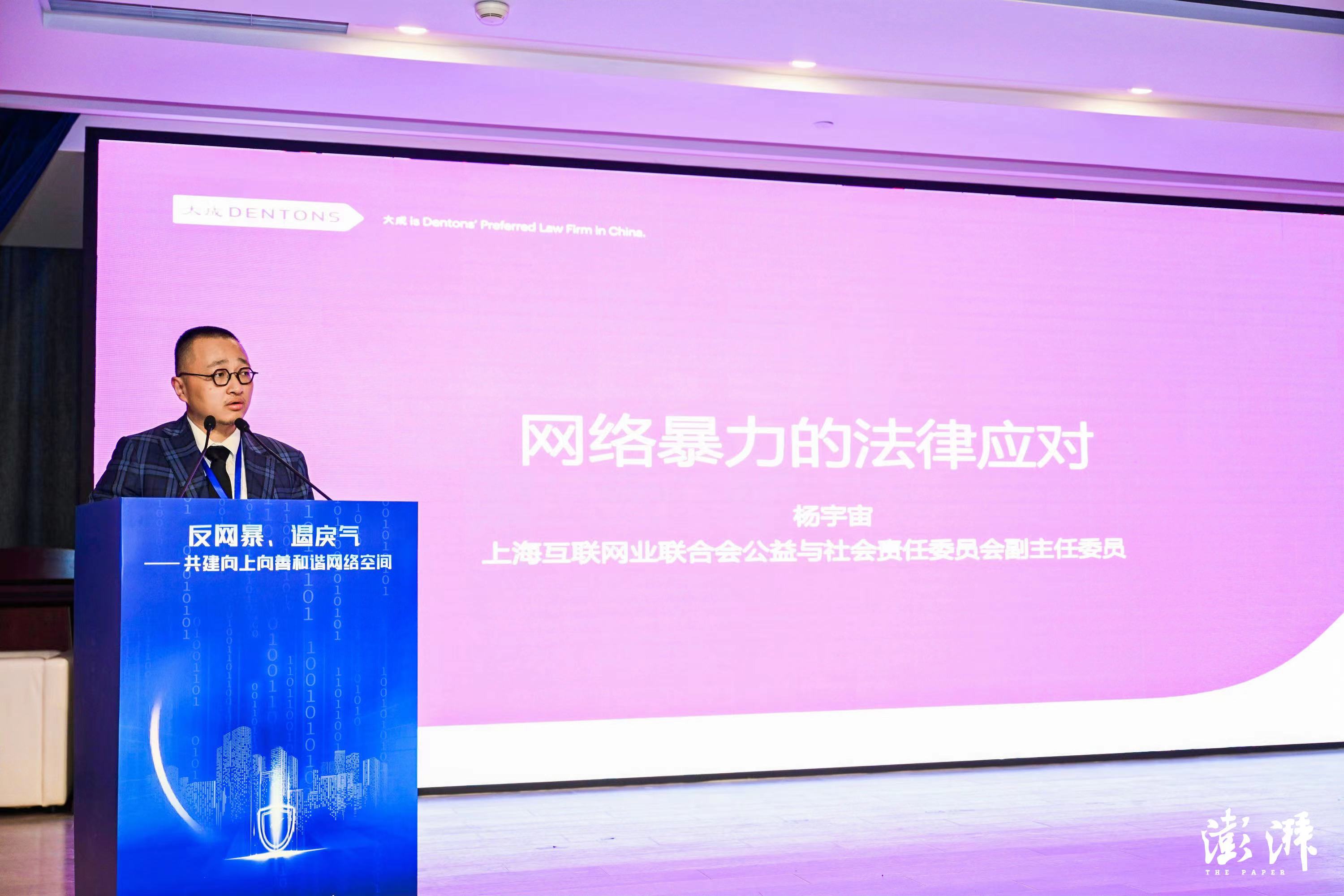 楊宇宙在演講中呼吁法律界的同仁將自己的時(shí)間投入到反網(wǎng)絡(luò)暴力的法律援助中去。