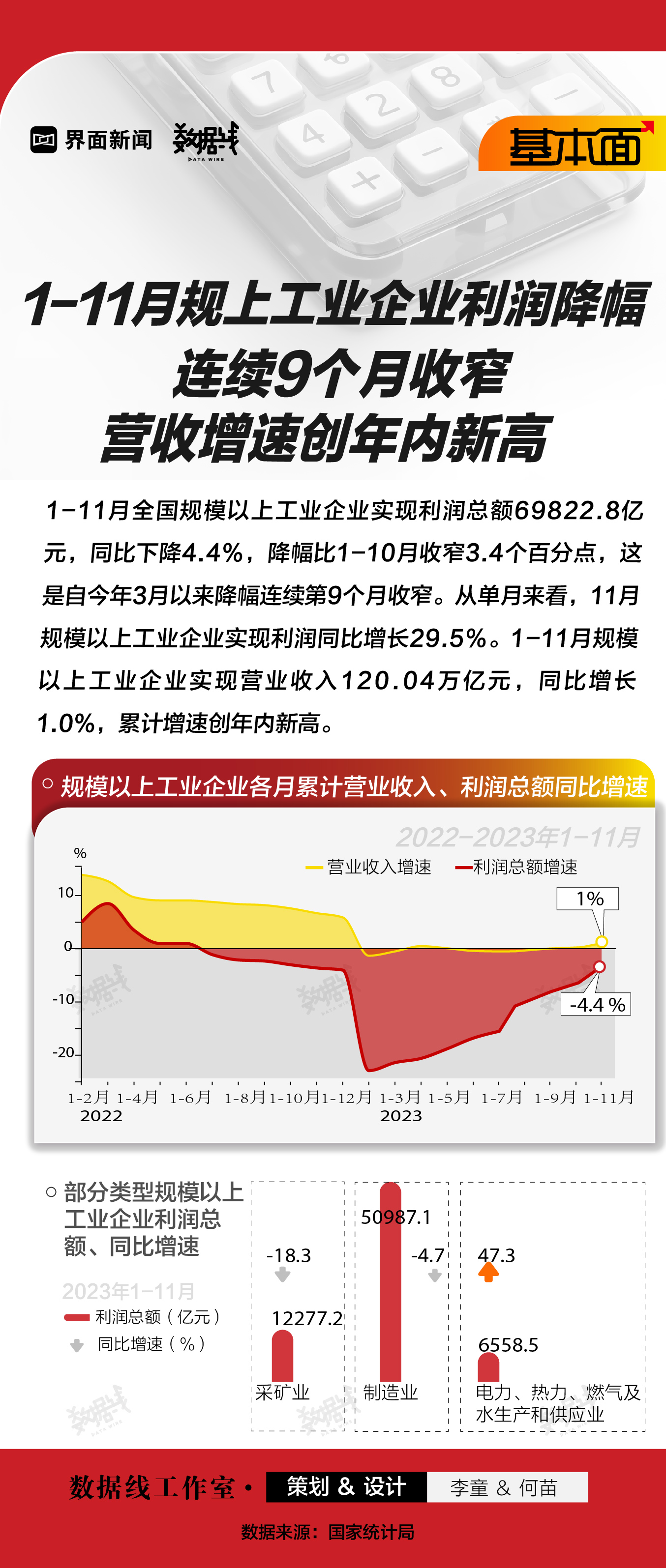基本面 | 1-11月規(guī)上工業(yè)企業(yè)利潤(rùn)降幅連續(xù)9個(gè)月收窄,營(yíng)收增速創(chuàng)年內(nèi)新高