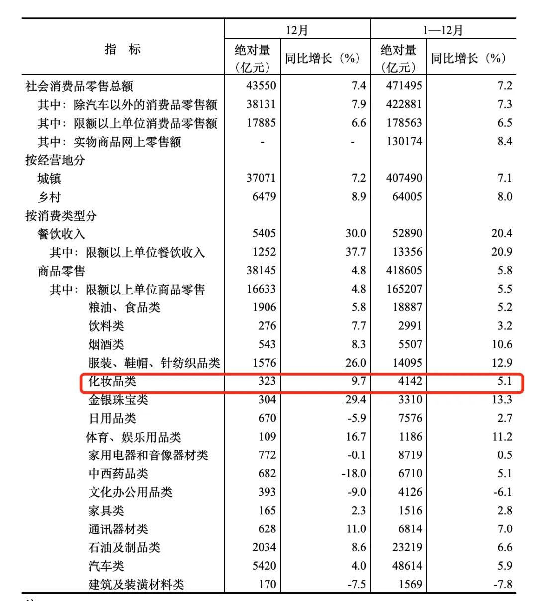 01 化妝品零售總額創(chuàng)10年新高,但增速未跑贏大盤