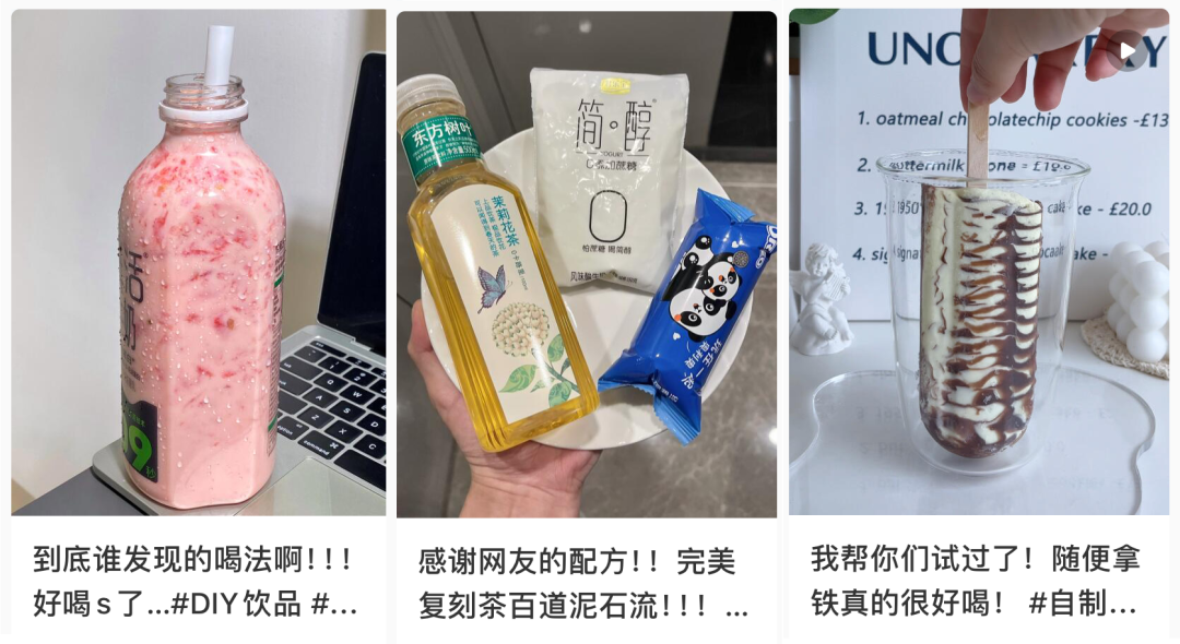 從小眾個體的樂子到風靡互聯(lián)網(wǎng),這股“爆改食飲”的風潮之所以流行,不僅是因為DIY本身有動手樂趣,還是因為小紅書平臺上有大量用戶分享體驗和成果,刺激更多靈感,并一傳十、十傳百。