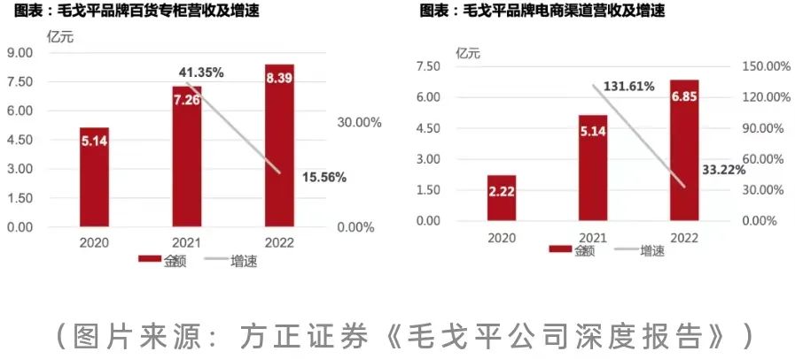 渠道方面,自20年新冠疫情以來,線下專柜銷售受阻,毛戈平公司及時調(diào)整了銷售策略,2020-2022年,3年間電商營收從2.22億元增長至6.85億元,占比由27.96%增長至42.80%。結(jié)合當(dāng)前的消費者習(xí)慣,可以預(yù)見,毛戈平在未來電商渠道營收占比仍然會有不少的增長。