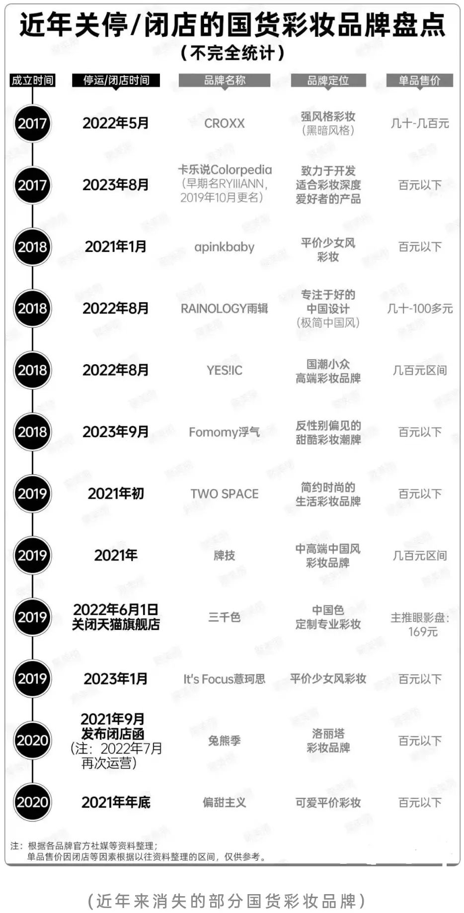 回到前文討論的國貨化妝品,近年來各種原因關(guān)停/閉店的新銳國貨彩妝品牌不在少數(shù),消失的原因包括缺乏核心競爭力、產(chǎn)品質(zhì)量不穩(wěn)定、資金鏈不充足等。成功者各有各的光輝,失敗者也各有各的黯淡,在這樣極其內(nèi)卷的市場上,一個品牌很難依靠單一亮點生存下來。無論是產(chǎn)品力,還是營銷和渠道能力,無論高舉高打,還是穩(wěn)扎穩(wěn)打,都既要適應(yīng)市場,又有核心競爭力。在這樣的市場中,所有能存活下來的品牌,都令人敬畏。