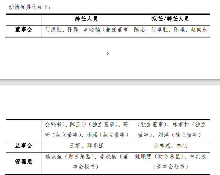 目前,新任財務(wù)總監(jiān)姚順熙、董事會秘書林劍波已正常履職,其他提名人員在完成相關(guān)審議程序后履職。