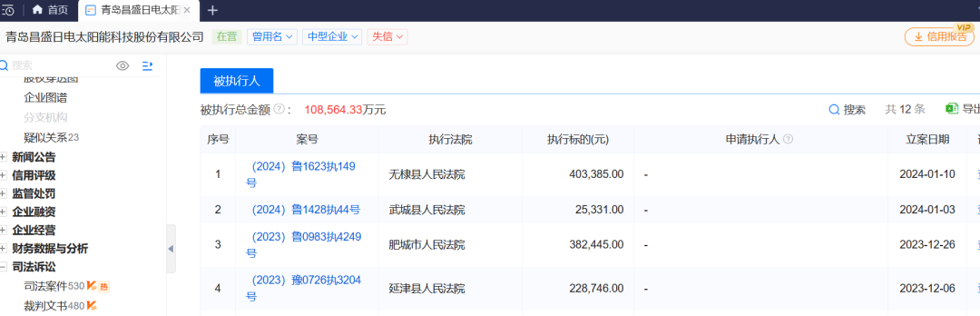 昌盛日電持有的美達股份全部處于質(zhì)押和凍結(jié)狀態(tài),該公司更有17條失信被執(zhí)行人信息。2023年至今,昌盛日電已有12次被執(zhí)行人信息,被執(zhí)行總金額約10.86億元。