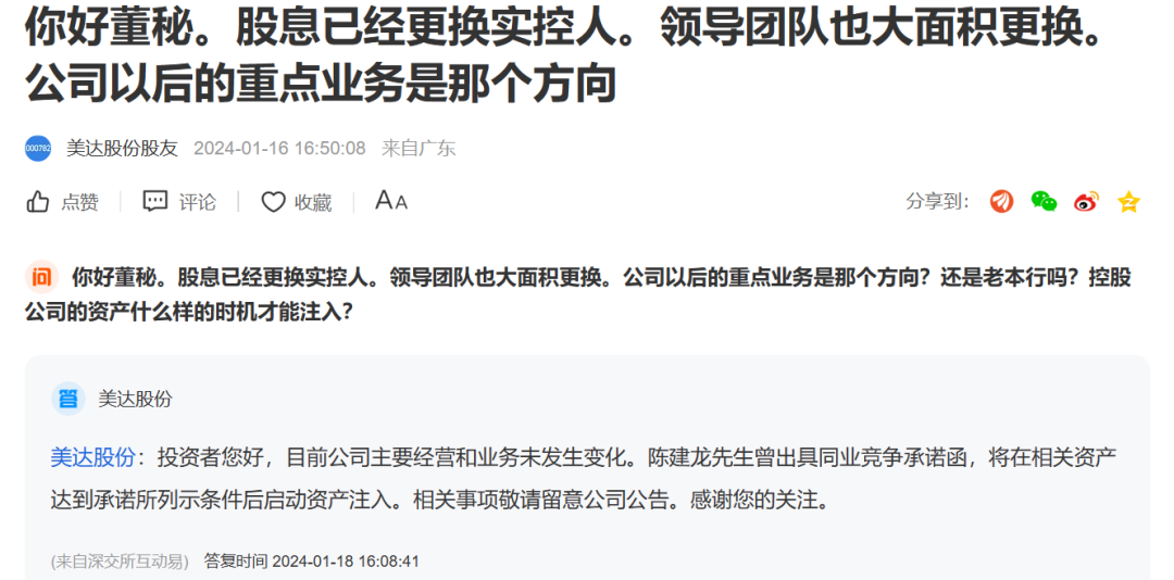 1月18日,美達股份董秘回復投資人咨詢時表示,陳建龍已經(jīng)出具同業(yè)競爭承諾函,將在相關(guān)資產(chǎn)達到承諾所列示條件后啟動資產(chǎn)注入。