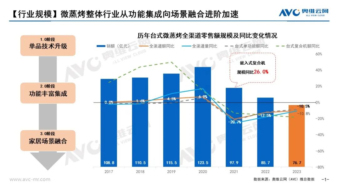 產(chǎn)品端:單功能微波爐雙線提升,微蒸烤復合機迭代加速規(guī)模走高
