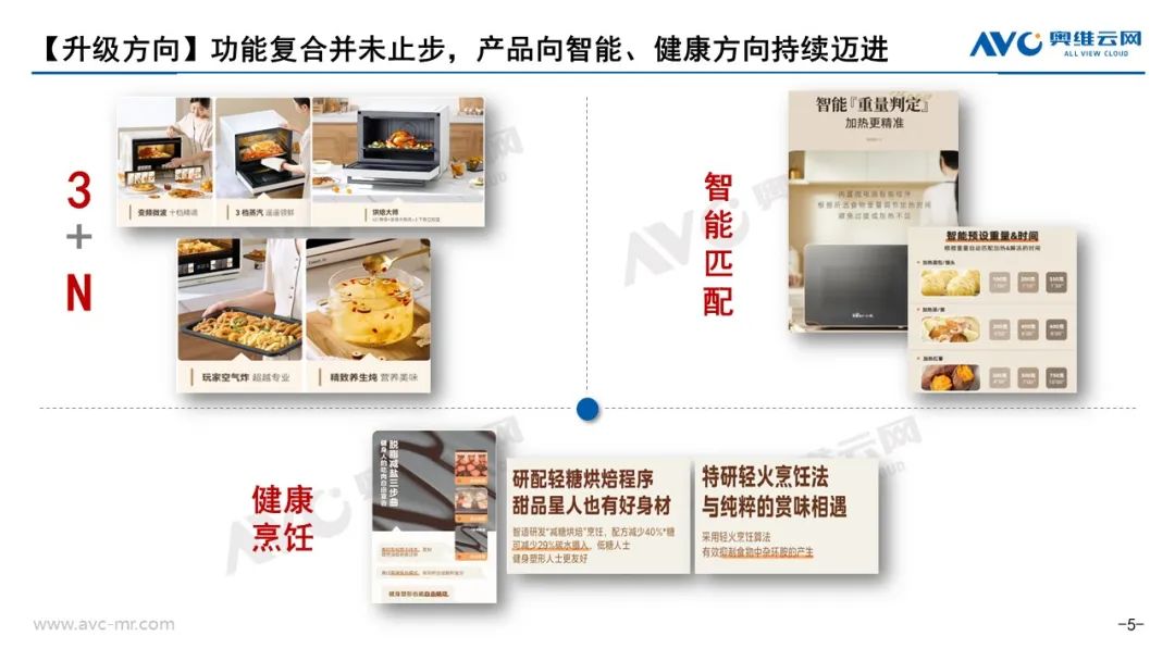 3+N擴展:圍繞微蒸烤為基礎(chǔ),疊加空氣炸、養(yǎng)生燉、快速煮等需求較高功能的集成品類將成為未來一段時間的發(fā)力重點;