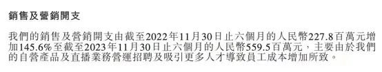雖是玩笑話,但是從財報數(shù)據(jù)上來看,顯然利潤率不升反降。實際上,2023財年下半年(2022年12月-2023年5月),東方甄選為了挖掘新流量已經(jīng)加大了銷售及營銷開支,下半年相較于2023財年上半年環(huán)比增長70%,已經(jīng)導(dǎo)致下半年凈利潤環(huán)比下降32.8%至3.9億元。