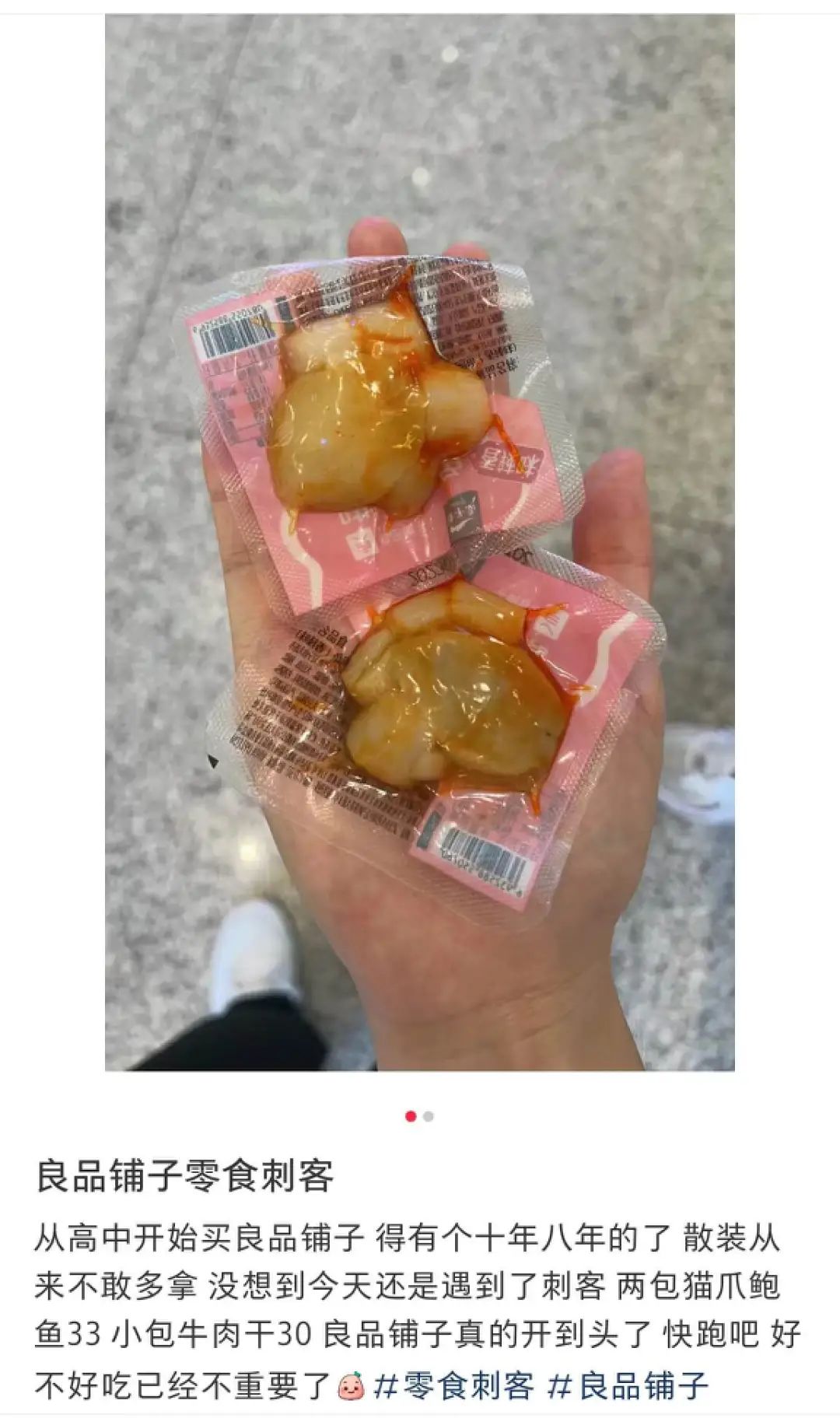 在小紅書上,眾多消費者已經(jīng)將良品鋪子冠上“零食刺客”的標(biāo)簽。一個帖子中寫道:“從高中開始買良品鋪子,得有十年八年的了,沒想到今天還是遇到了零食刺客,好吃不好吃已經(jīng)不重要了”。