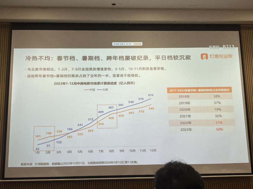去年,電影市場(chǎng)的檔期效應(yīng)更加集中,春節(jié)檔+暑期檔占到全年票房一半以上。燈塔專業(yè)版報(bào)告顯示,2023年人均觀影人次為2.58次/人,其中51%的人一年只看一次電影。另外,從發(fā)行角度來說,最基本的原則是不同投資體量的影片匹配不同的檔期。而文藝片普遍投資體量小,宣發(fā)費(fèi)用有限,本身就不具備在大熱檔期競(jìng)爭(zhēng)的優(yōu)勢(shì)。
