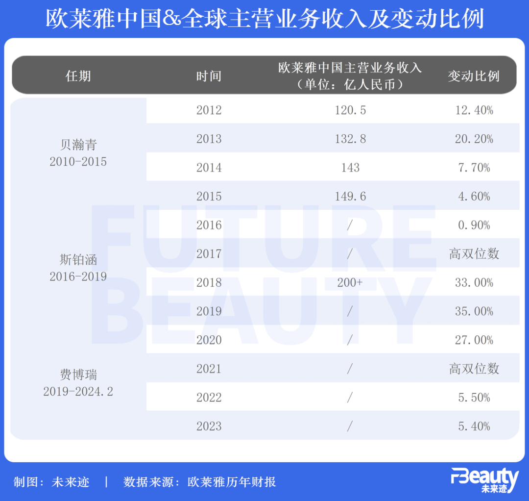 盡管總體優(yōu)于北亞地區(qū)的業(yè)績(jī)表現(xiàn),但綜合2012年至2023年歐萊雅中國(guó)市場(chǎng)的業(yè)績(jī)表現(xiàn)來(lái)看,5.4%的增速仍處于較低值,且低于2022年的5.5%。