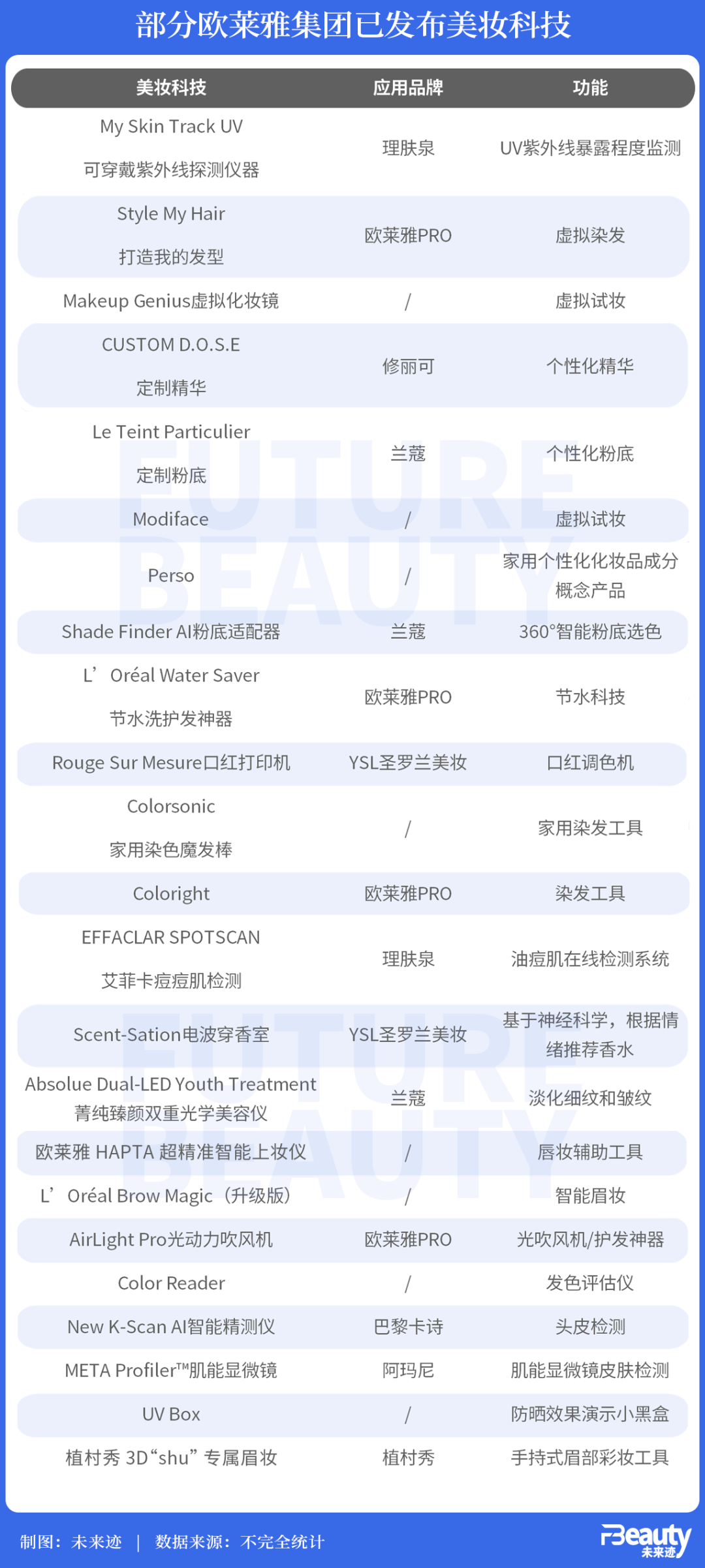 可見(jiàn),歐萊雅集團(tuán)正在不斷挖掘前沿科技潛力,來(lái)為美妝工具的科技化、智能化賦能。