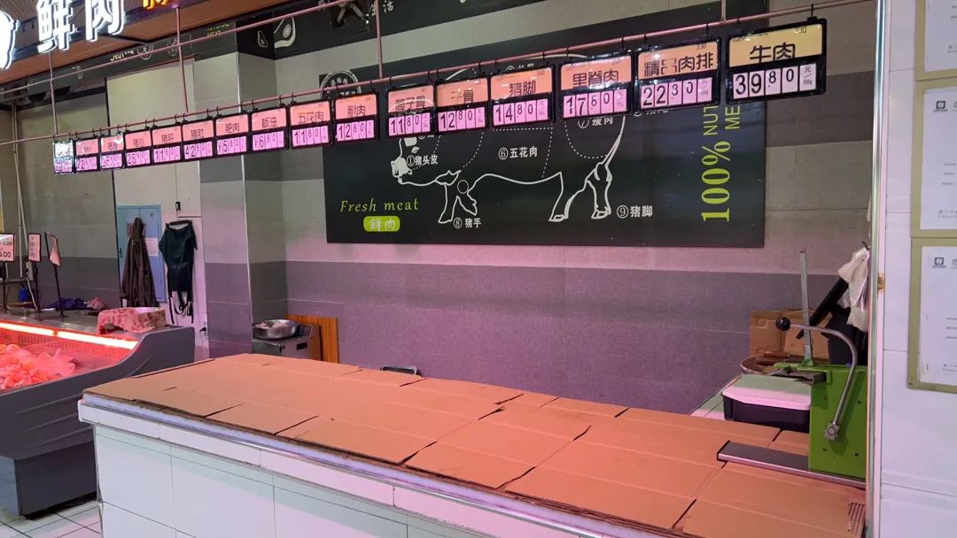 圖:下午5點(diǎn),超市肉攤?cè)靠樟?/em>