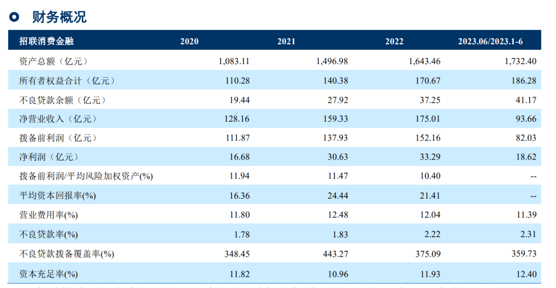 報告期內(nèi),招聯(lián)金融實現(xiàn)凈利潤 16.68 億元、30.63 億元、33.29億元及18.62 億元,逐年增長;股東權(quán)益由2020 年末的110.28億元增加到 2023 年 6月末的186.28 億元。