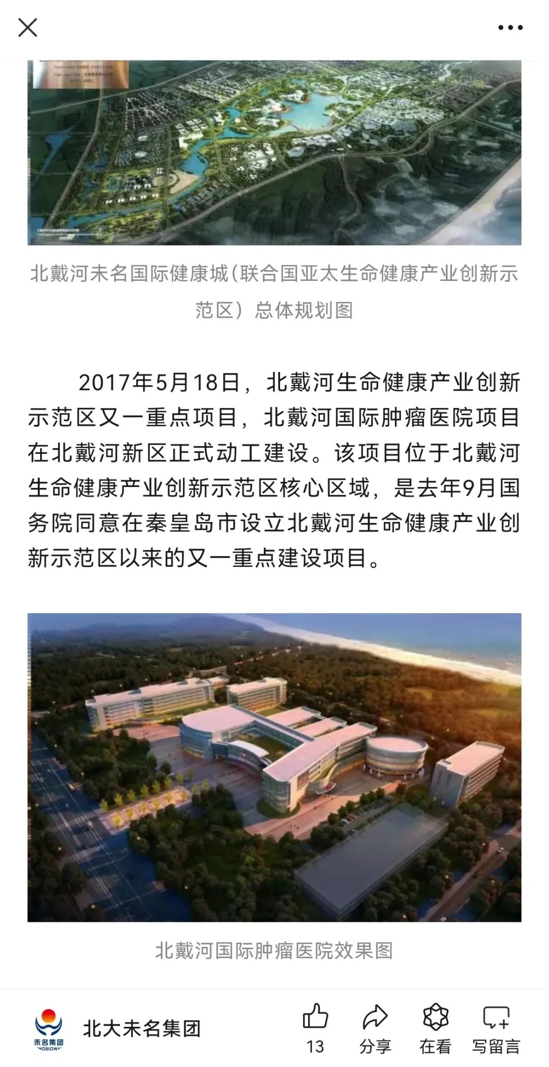 未名集團(tuán)公眾號(hào)宣傳北戴河健康城項(xiàng)目
