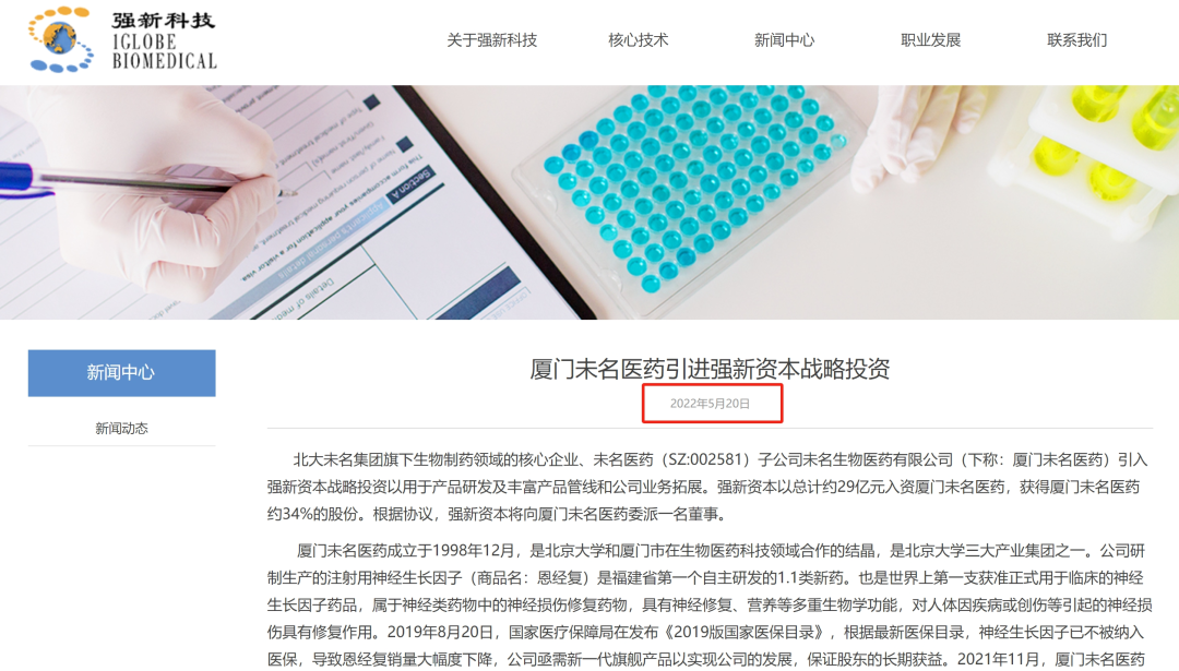 嘴上是這么說(shuō),但情懷也不能當(dāng)飯吃。增資事件的涉案人李鵬飛曾在《淺談強(qiáng)新資本為啥29億增資廈門(mén)未名》的文章中稱(chēng),強(qiáng)新的新冠藥物已處于三期,亟需基地,而廈門(mén)未名占地150余畝,且目前大部閑置。強(qiáng)新認(rèn)為是一塊非常好的標(biāo)的。