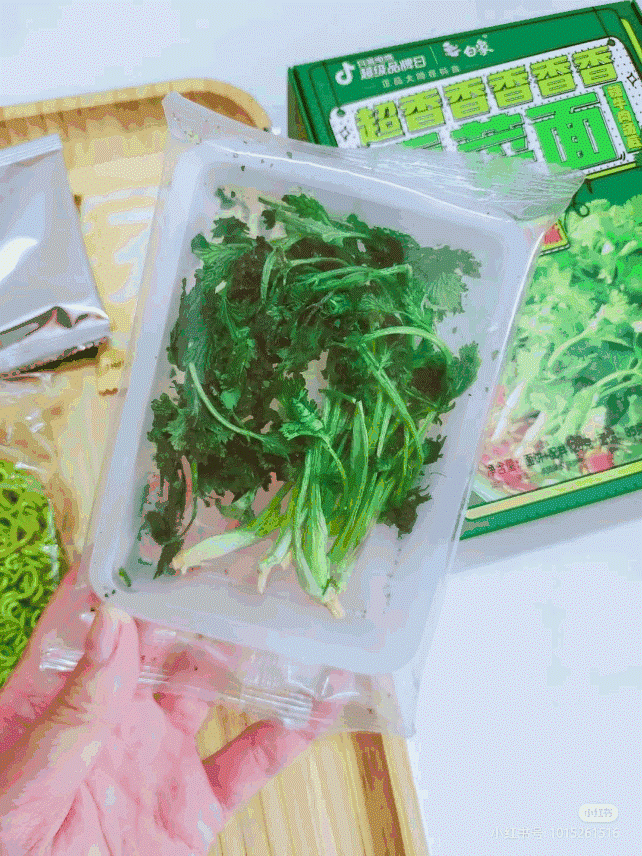 不只是從產(chǎn)品名稱凸顯香菜的“多”,產(chǎn)品也不吝惜對(duì)香菜的使用。如白象的“超香香香香香香菜面”,“香菜面”前有5個(gè)“香”,蔬菜包里就放5棵新鮮香菜,主打一個(gè)“圖片與實(shí)物相符”。