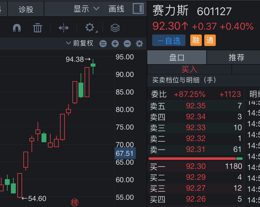 盤面上,賽力斯股價近期表現(xiàn)有力,目前總市值超千億元,在5天走出3個漲停。2月6日至3月1日共計(jì)13個交易日,賽力斯累計(jì)漲幅達(dá)到了64.53%,截至3月1日收盤,賽力斯的總市值達(dá)1394億元。從2月27日披露的連續(xù)三日的龍虎榜看,買入前五中有三個席位是拉薩游資,買一則是“滬股通專用”,還有一個席位是廣發(fā)證券鄭州農(nóng)業(yè)路營業(yè)部。