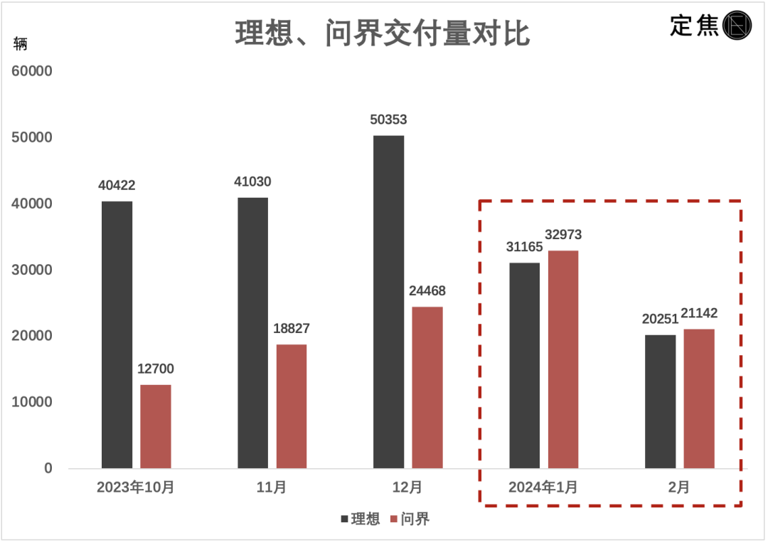 不過問界留了一手,它上市了M9,到現(xiàn)在拿了5萬輛的訂單,2月26日已開始交付了。M9和新M7兩款車的交付量疊加在一起,接下來至少兩個(gè)月的成績(jī)依然會(huì)很亮眼,繼續(xù)超過理想也不是不可能。