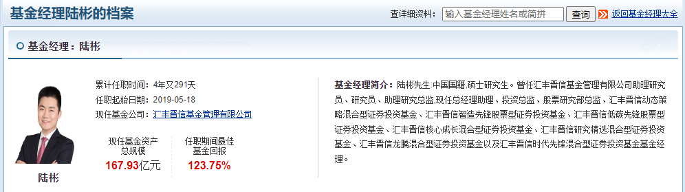 作為業(yè)內(nèi)知名基金經(jīng)理,陸彬?qū)τ趨R豐晉信來說,一直是頂梁柱一樣的存在。