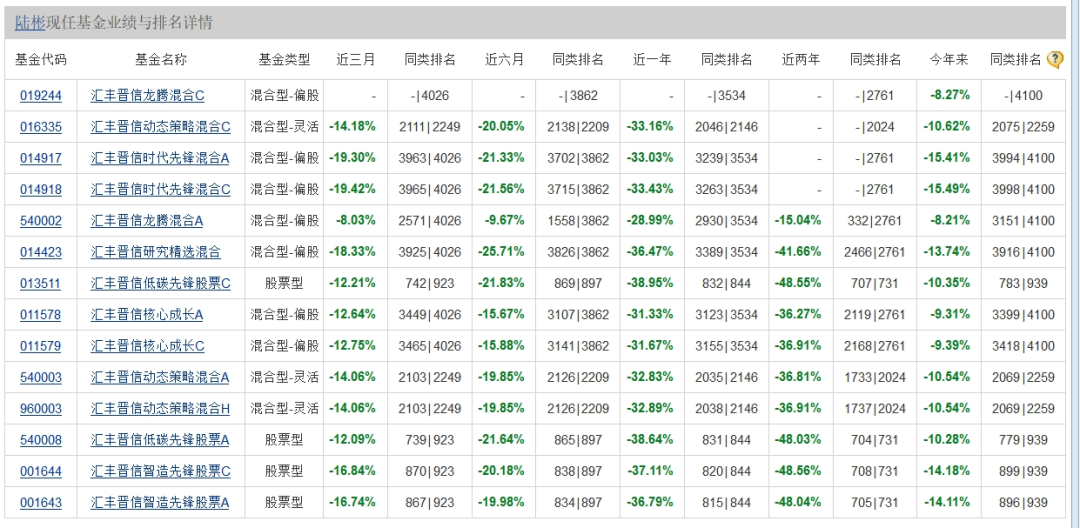 從排名來看,陸彬管理的基金大部分也比較靠后。