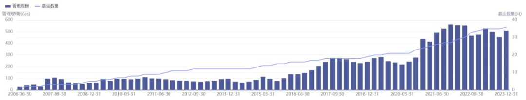 匯豐晉信全稱是匯豐晉信基金管理有限公司,成立已超過18年之久。截至2023年末,管理規(guī)模僅略超500億元,其中陸彬的管理規(guī)模約168億元,占比超三成。