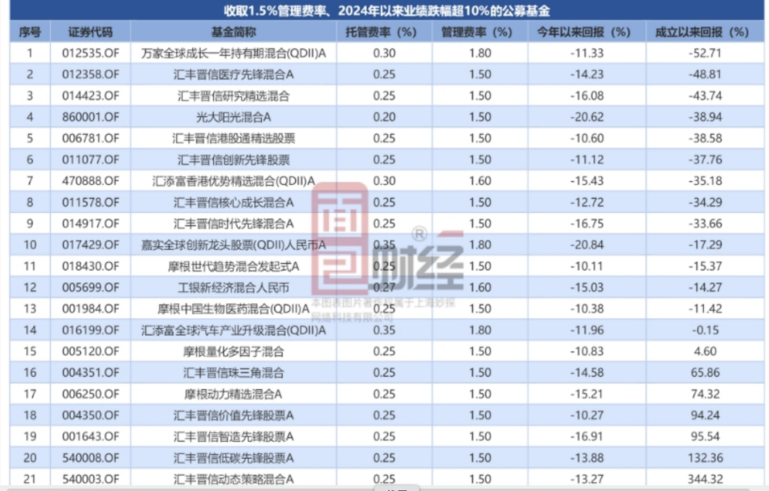 但是,就在這種大背景下,有媒體發(fā)現(xiàn),公募基金中有22只基金依然收取1.5%以上管理費(fèi),且今年開年以來虧損幅度達(dá)到10%以上。