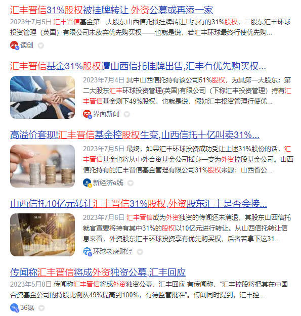 匯豐晉信基金股權(quán)雖從始至終并未發(fā)生變化,但作為實(shí)控人的山西信托曾有意將部分股權(quán)出手。