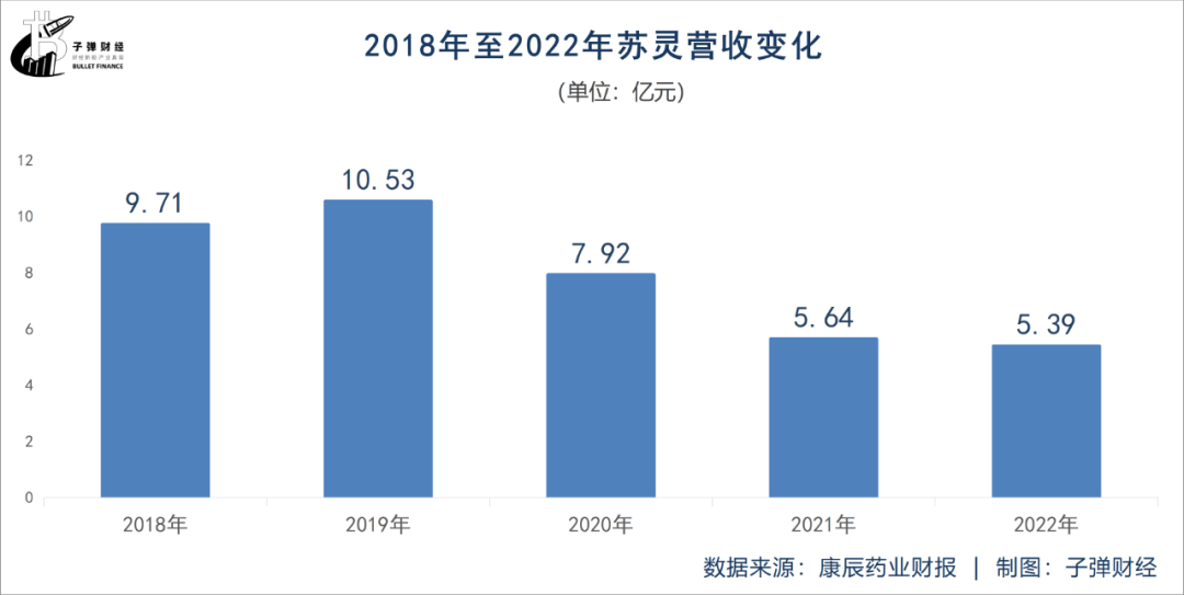 分析原因,核心藥品“蘇靈”的業(yè)績(jī)波動(dòng),對(duì)康辰藥業(yè)的影響較大。2020年至2022年,蘇靈所帶來(lái)的營(yíng)收由2020年的7.92億元減少至5.39億元??党剿帢I(yè)解釋稱,由于疫情影響,住院病人和手術(shù)病人大幅減少,導(dǎo)致外科手術(shù)止血藥物“蘇靈”的銷售量受到一定影響。