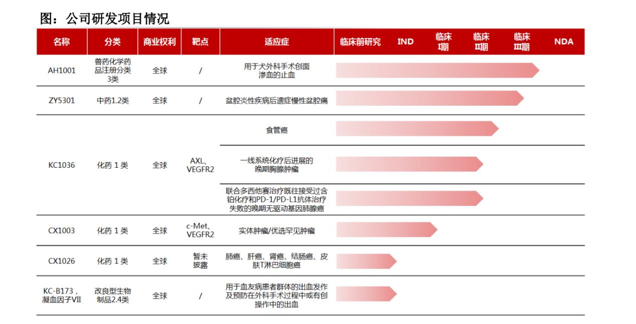 從在研項(xiàng)目來(lái)看,近年來(lái),康辰藥業(yè)也在推進(jìn)犬用注射用血凝酶AH1001、晚期食管鱗癌KC1036、金草片等研發(fā)項(xiàng)目。這些研發(fā)項(xiàng)目大多處于臨床階段,但這距離產(chǎn)品實(shí)現(xiàn)商業(yè)化還有段時(shí)間。