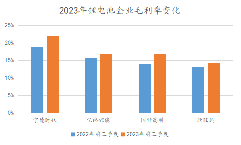 但從實際情況看,鋰電保住了盈利能力。2023年前三季度,寧德時代毛利率同比增加了3個百分點,億緯鋰能同比增加了0.9個百分點,國軒高科毛利率同比增加了2.8個百分點。