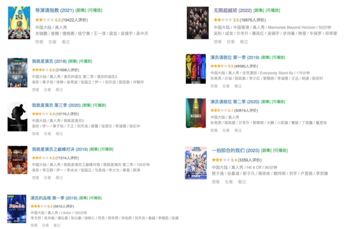 近八年里,綜藝演技綜藝的評分幾乎全部在及格線之下。好像不管怎樣,“被罵”一直是它們的宿命。