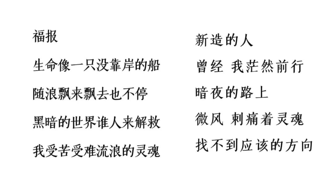 “造”,在中文語境里通常是不合自然規(guī)律的、應(yīng)用于“物”的動詞,帶有被外界控制、影響的意味。而對于人的蛻變,我們會更傾向于用新生來表達(dá)。但當(dāng)我們將“新造”一詞放在宗教語境里,則變得順理成章——當(dāng)人信主后,圣經(jīng)說:“他就成了新造的人。”