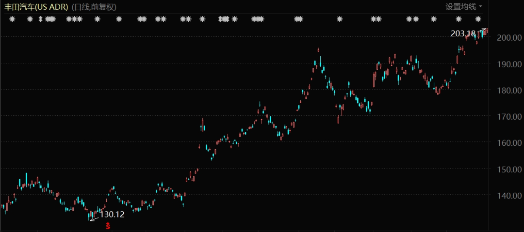 良好的業(yè)績支撐了股價上漲,當天豐田汽車美股股價大漲近8%,報收于218.86美元/股,創(chuàng)下歷史新高。實際上豐田汽車近一年的股價都在持續(xù)走高,期間漲幅高達55.24%,走勢遠比特斯拉穩(wěn)定,這是全球汽車市場紛繁復(fù)雜環(huán)境的一種集中體現(xiàn)。