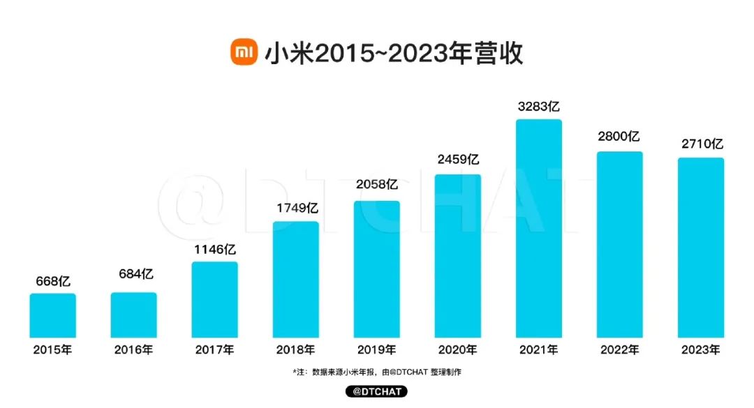 在下半年接連兩個季度表現(xiàn)強(qiáng)勁的帶動下,小米2023年總收入為2709.70億元?;蛟S是受2023年上半年拖累,小米全年收入同比微降3.2%。距離2021年創(chuàng)造的3283億元年?duì)I收,仍有不小差距。